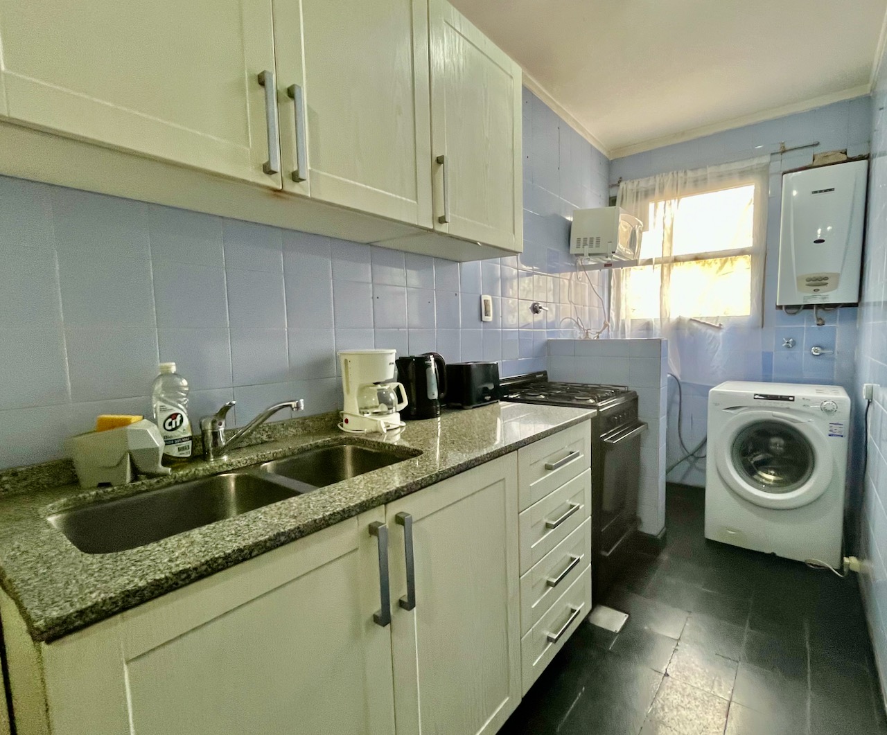 El departamento está ubicado en una avenida llena de tiendas, bares, mercados, para pasar una estancia agradable como turista o como residente.
